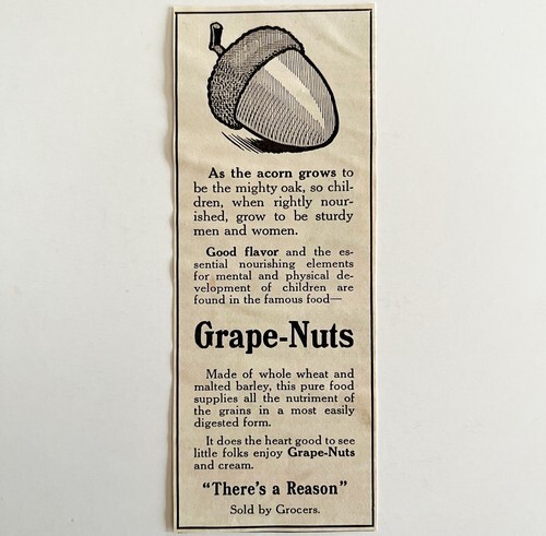 1916 Grape Nuts Cereal Acorns Advertisement and similar items