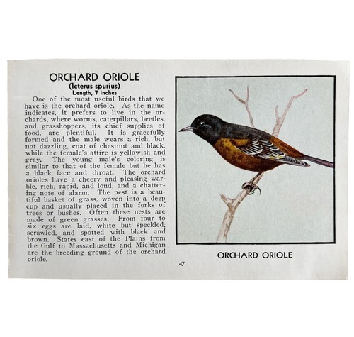 Orchard Oriole Bird Print 1931 Blue Book and 45 similar items