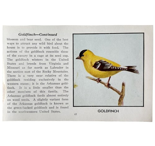 Goldfinch Bird Print 1931 Blue Book Birds Of and similar items