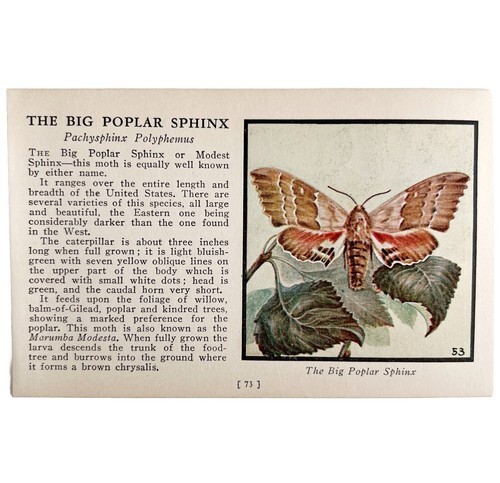 Big Poplar Sphinx Moth 1934 Butterflies Of America Antique Insect Art PCBG14A