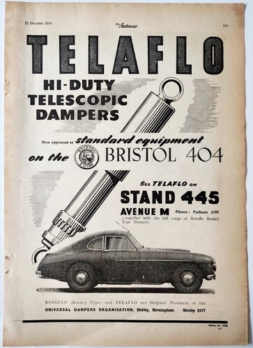 1954 Teleflo Dampers Earls Court Advertisement Motor Show Automobilia DWPP10