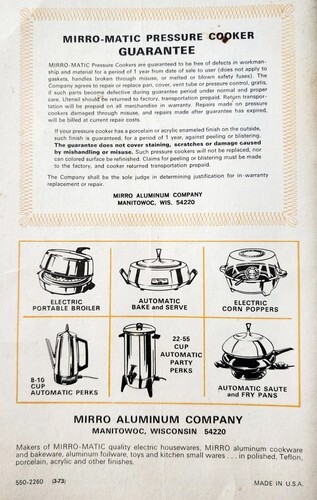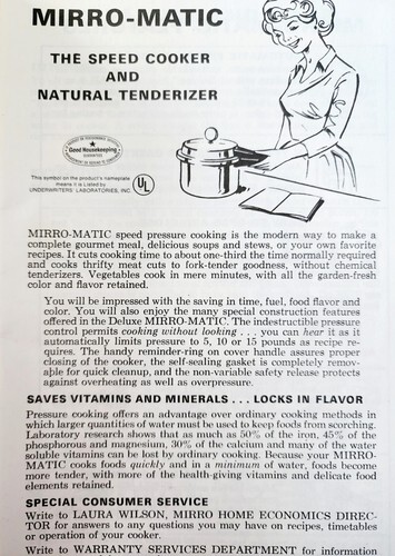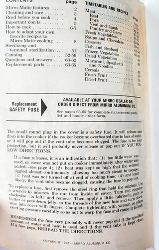 1972 Mirro Matic Pressure Cooker Instruction and similar items