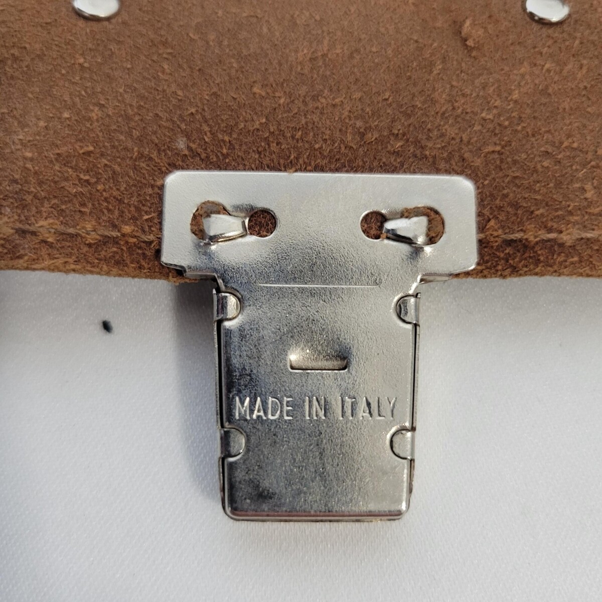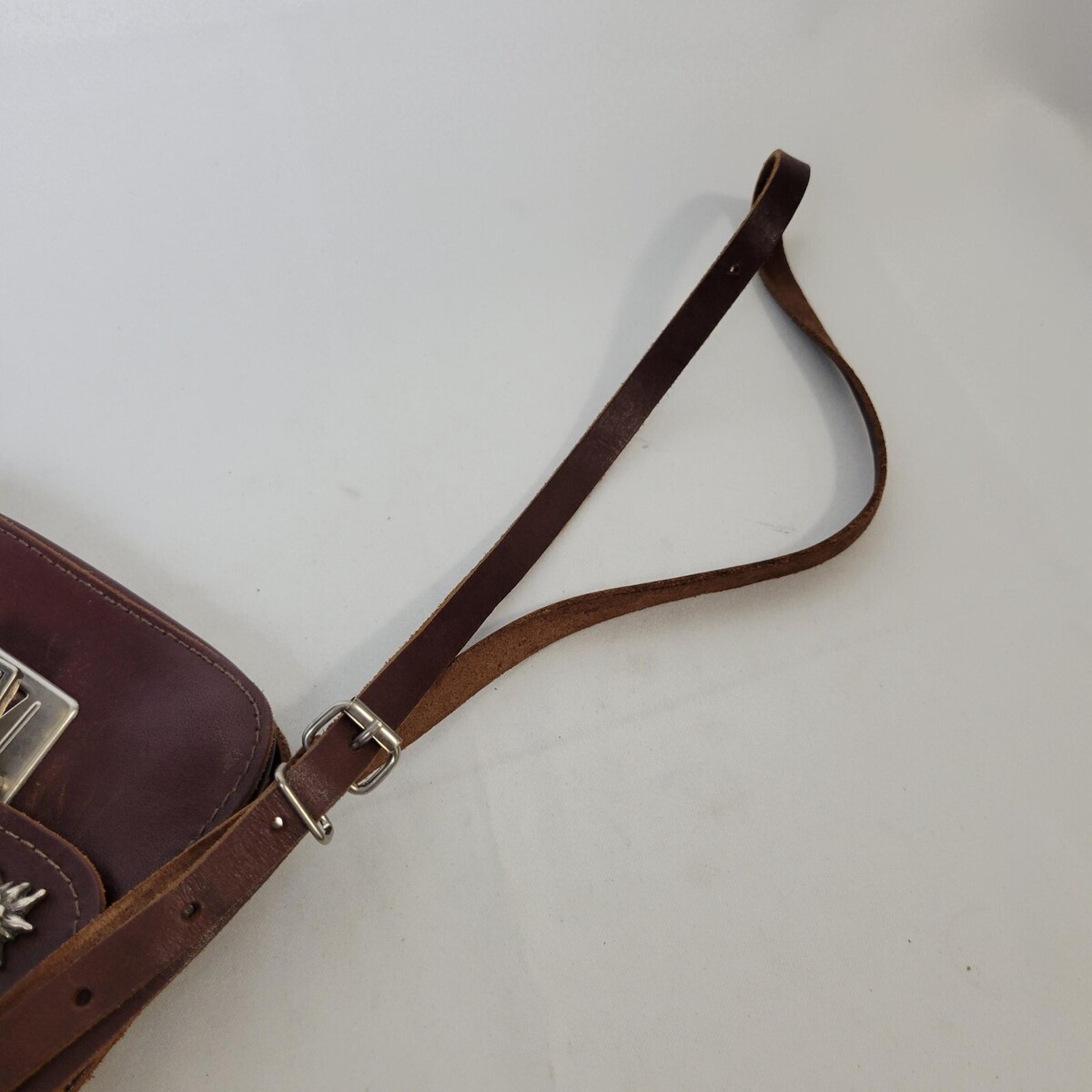 ITALY Brown Leather Crossbody Bag Purse Silver Tone Embellishments Small Adjust