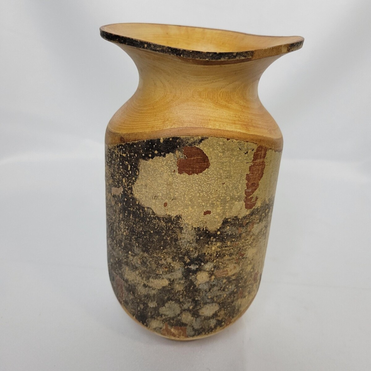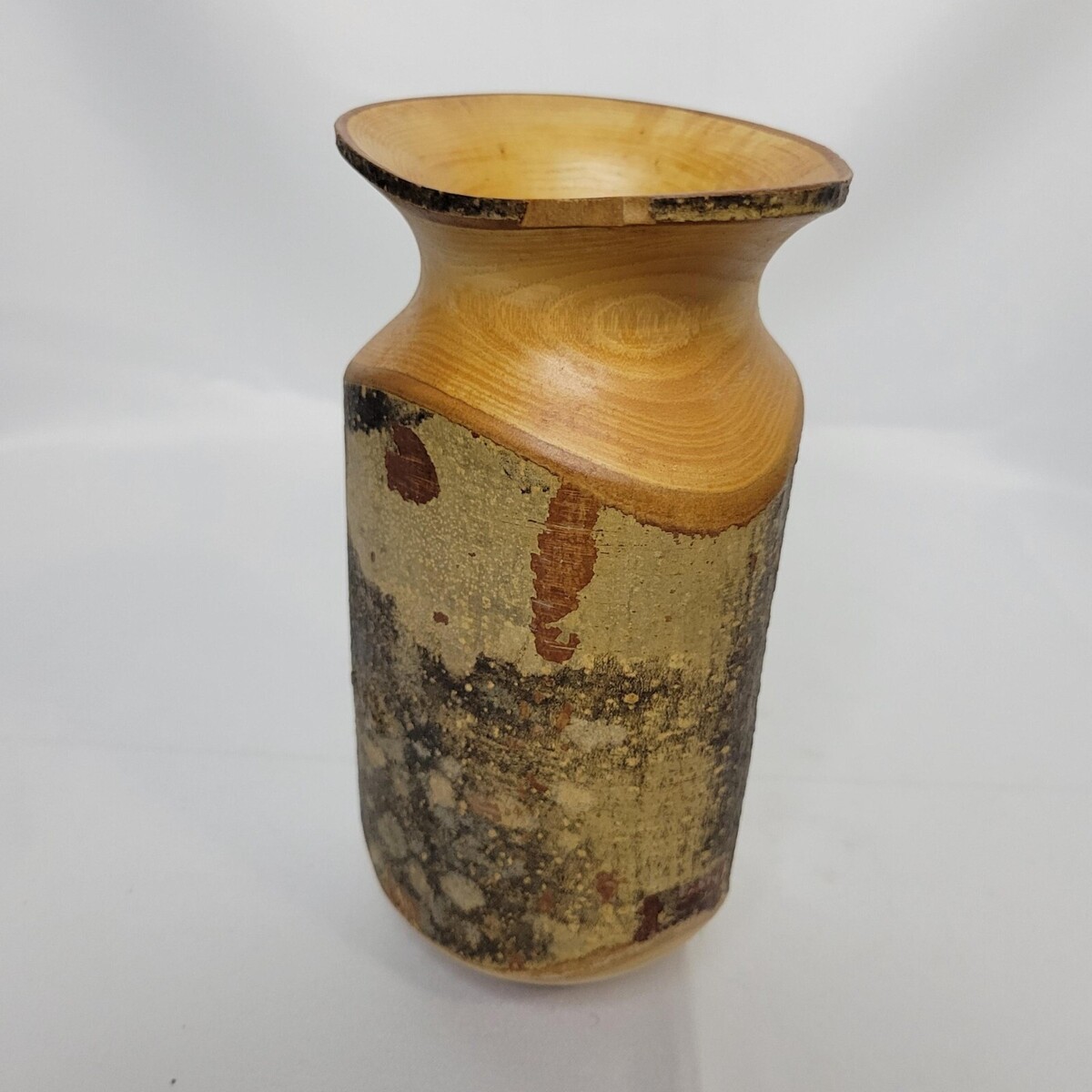 Hand Turned Wooden Vase Natural Light Wood Rustic Live Edge Bark Surface 8?