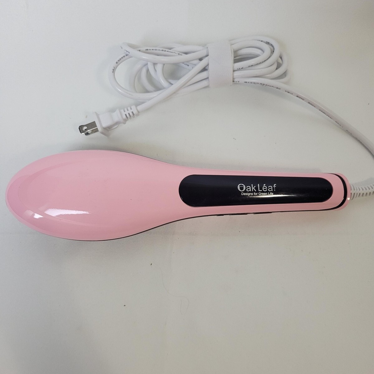 Oak Leaf Hair Brush Straightener PINK Electric Heated Straightener Brush