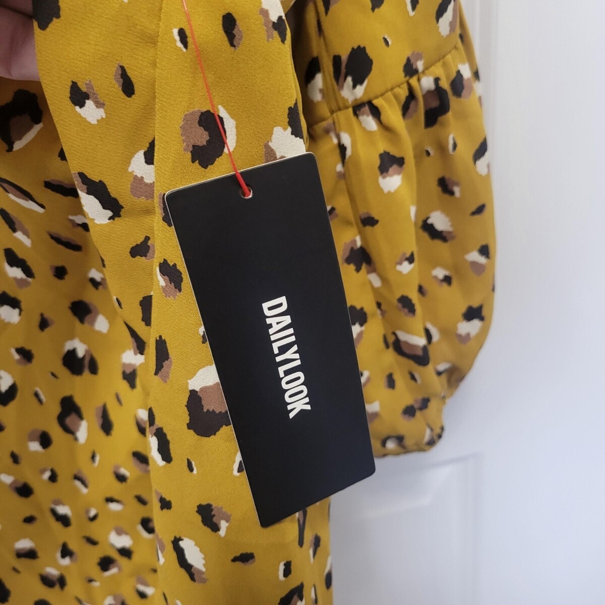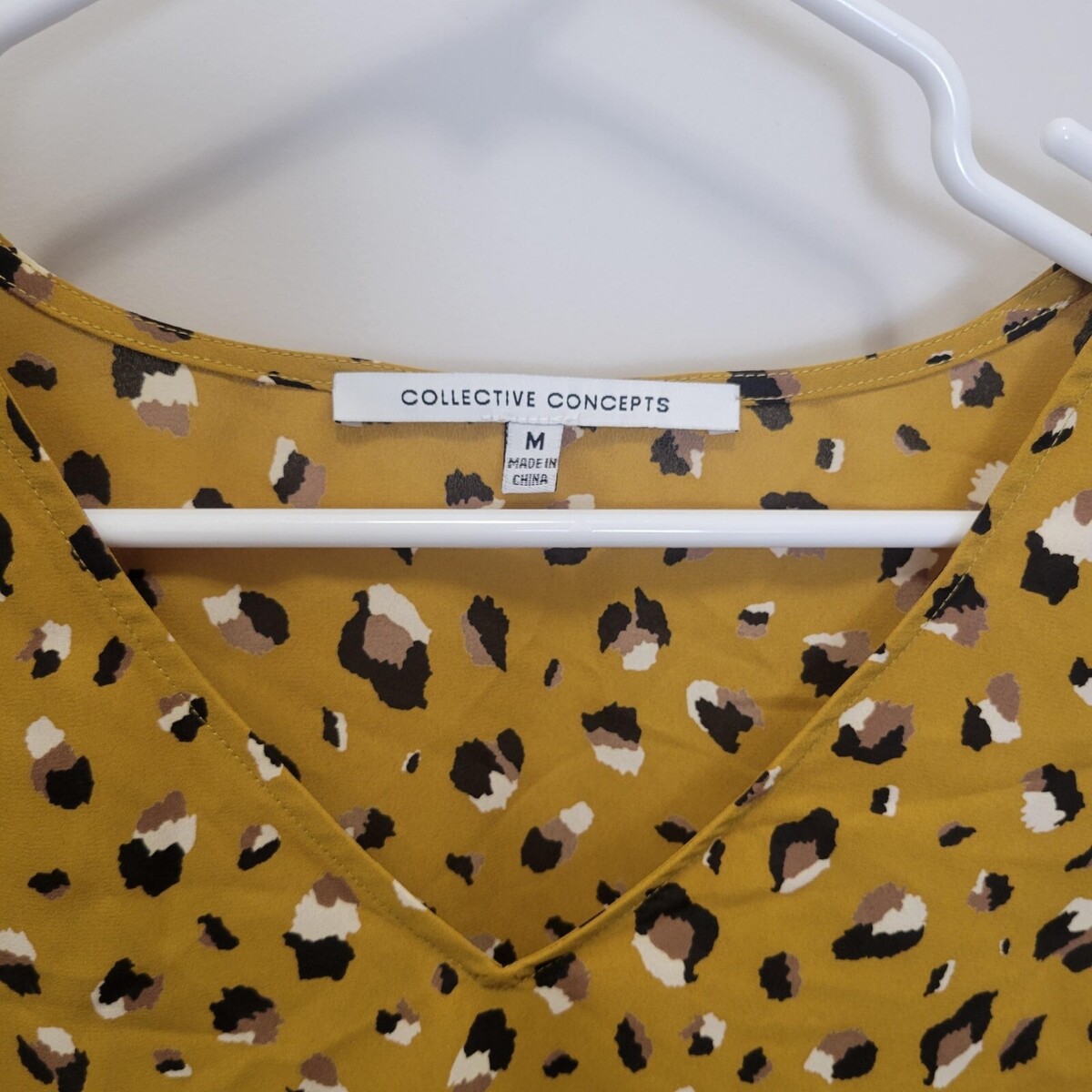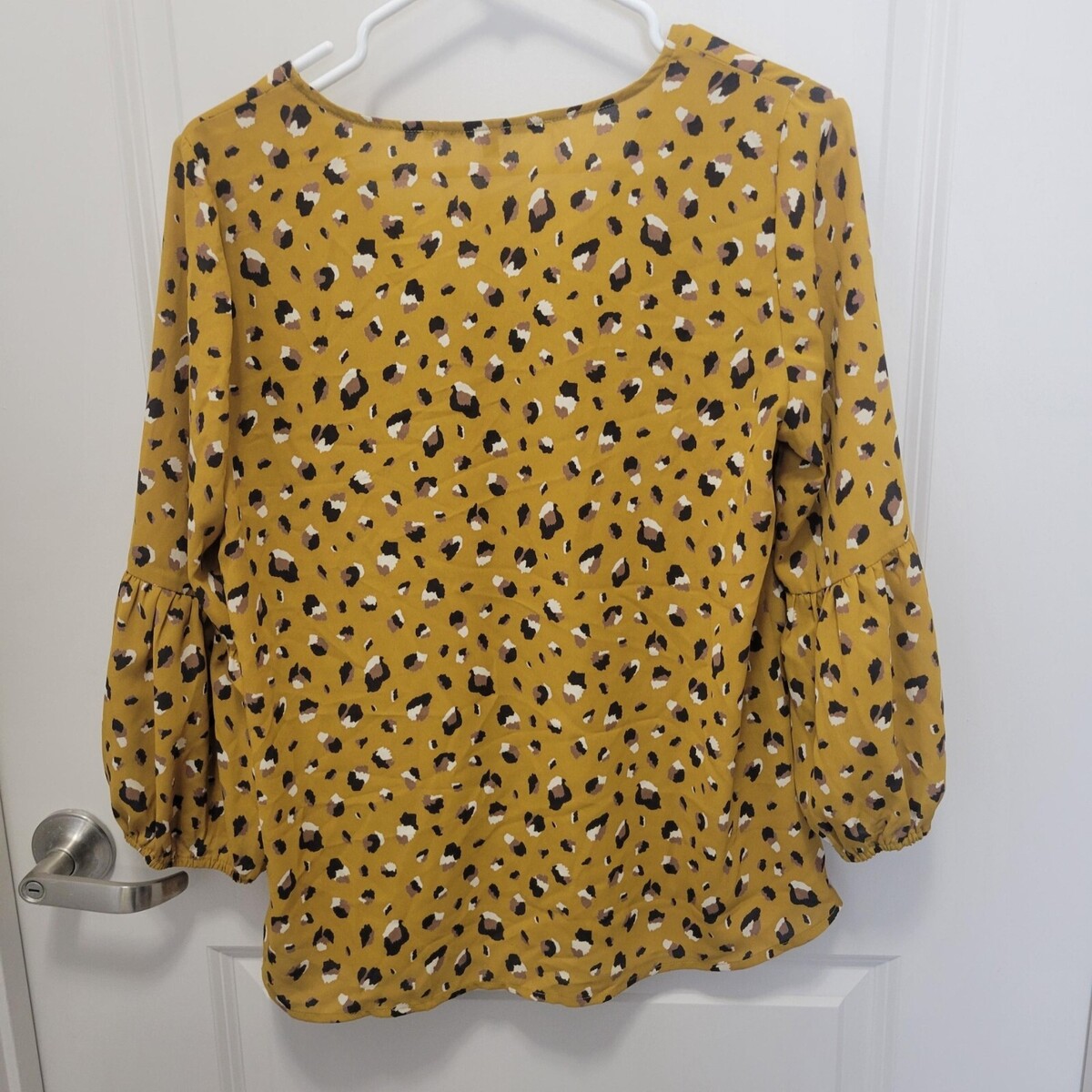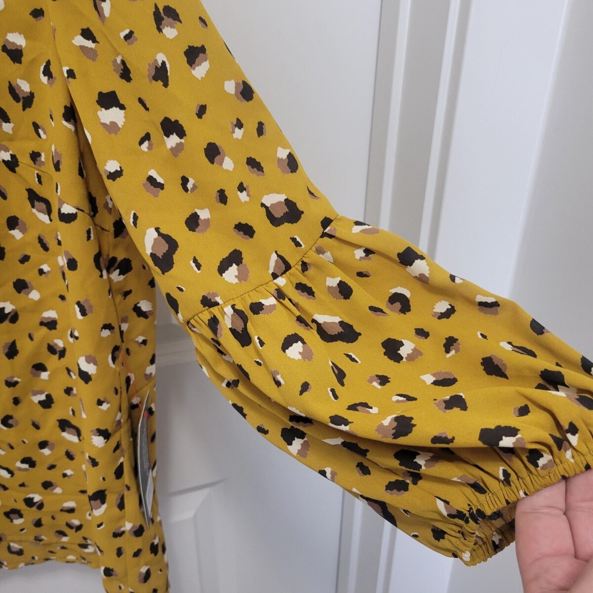 NWT Collective Concepts Daily Look Peasant Blouse Yellow Animal Print Sz M BOHO