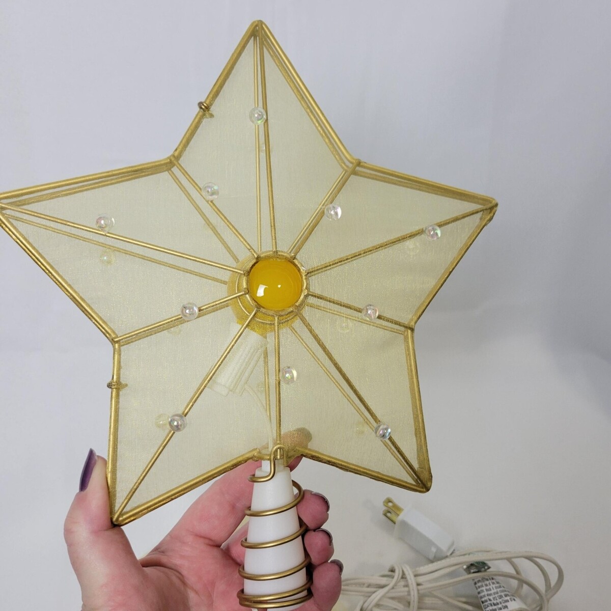 The Trimmerry 9.5" Gold Mesh Pearl Lighted Tree Topper Holiday Christmas w/Box