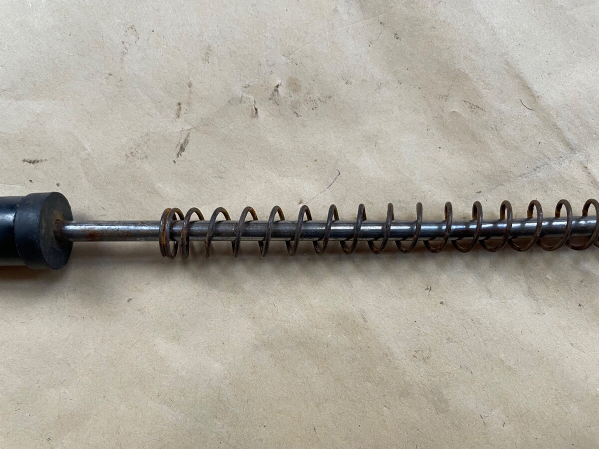 Original VW Emergency (Long Style) Hand Brake interior Handle Hook Rod, Knob and Spring. For your: Beetle/Karmann Ghia 1960's. End to end it is 11 1/4" Long. Please check your application before purchase.