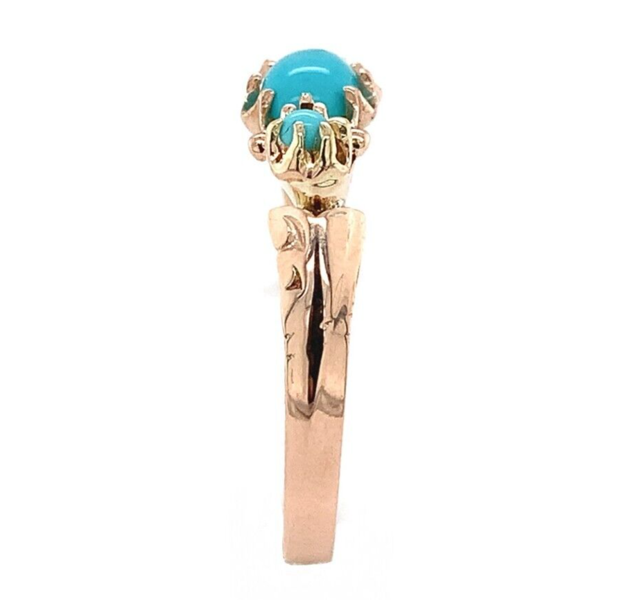 10k Rose Gold Victorian Genuine Natural Turquoise Ring Size 7.25 (#J6562)