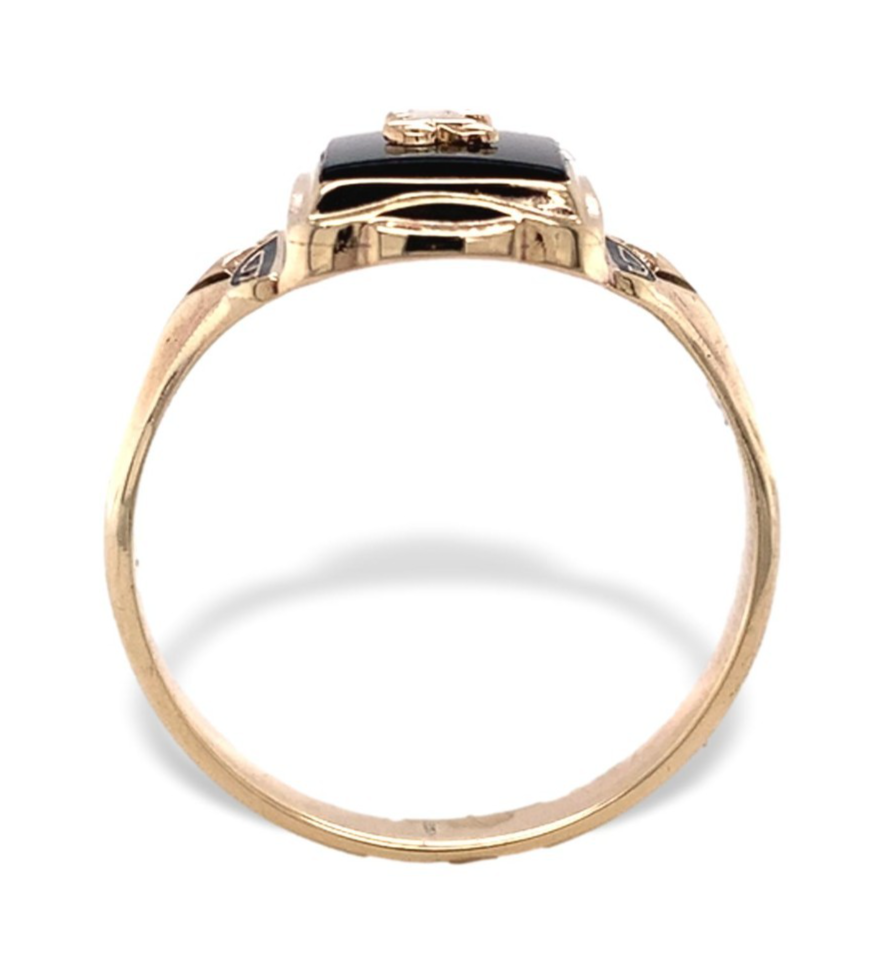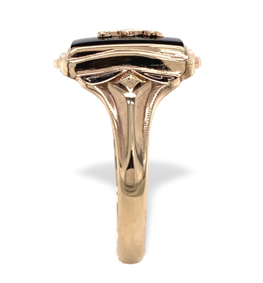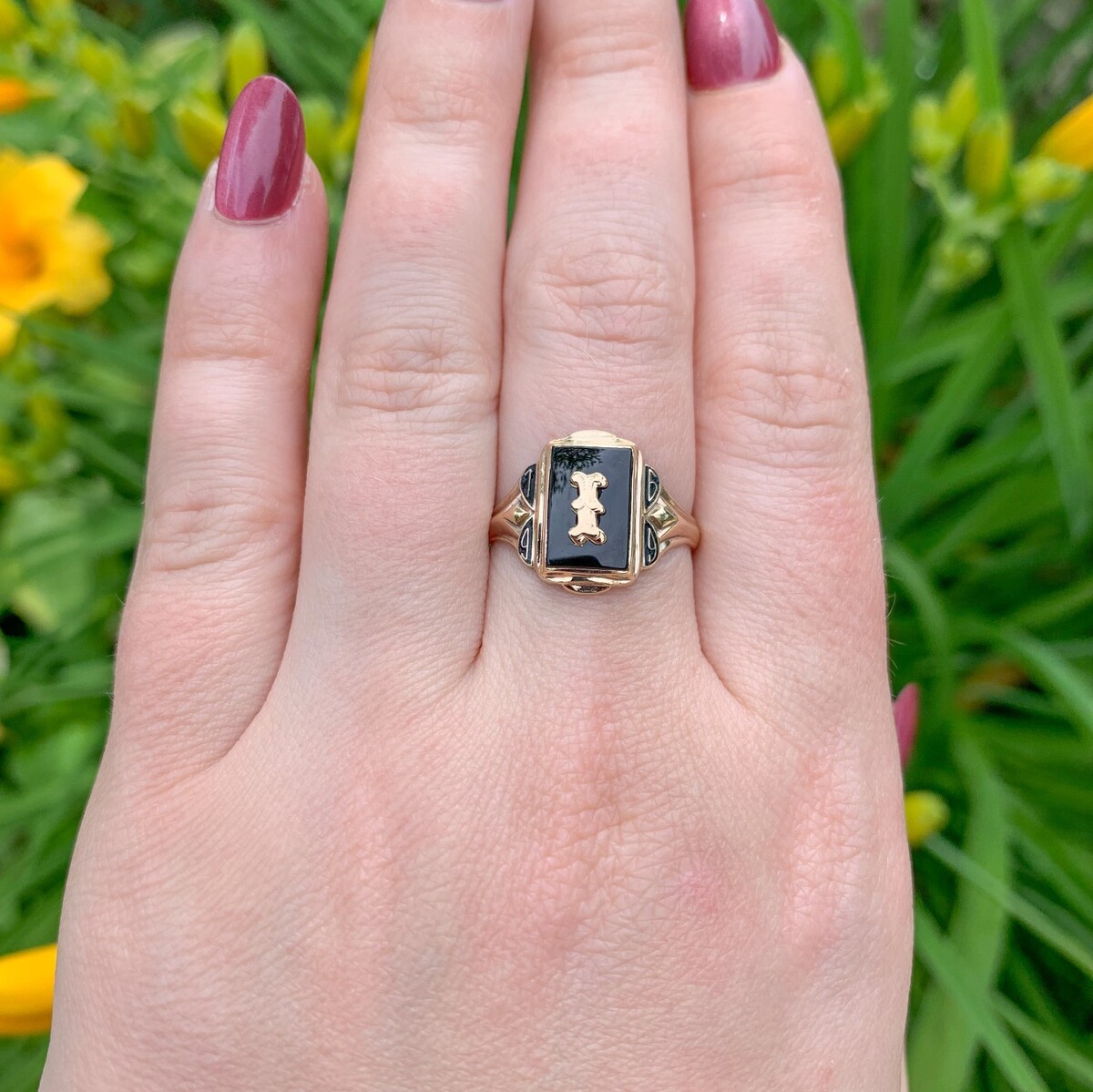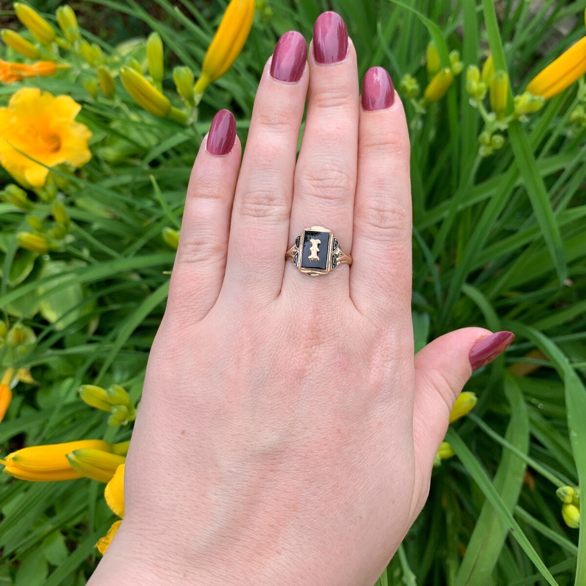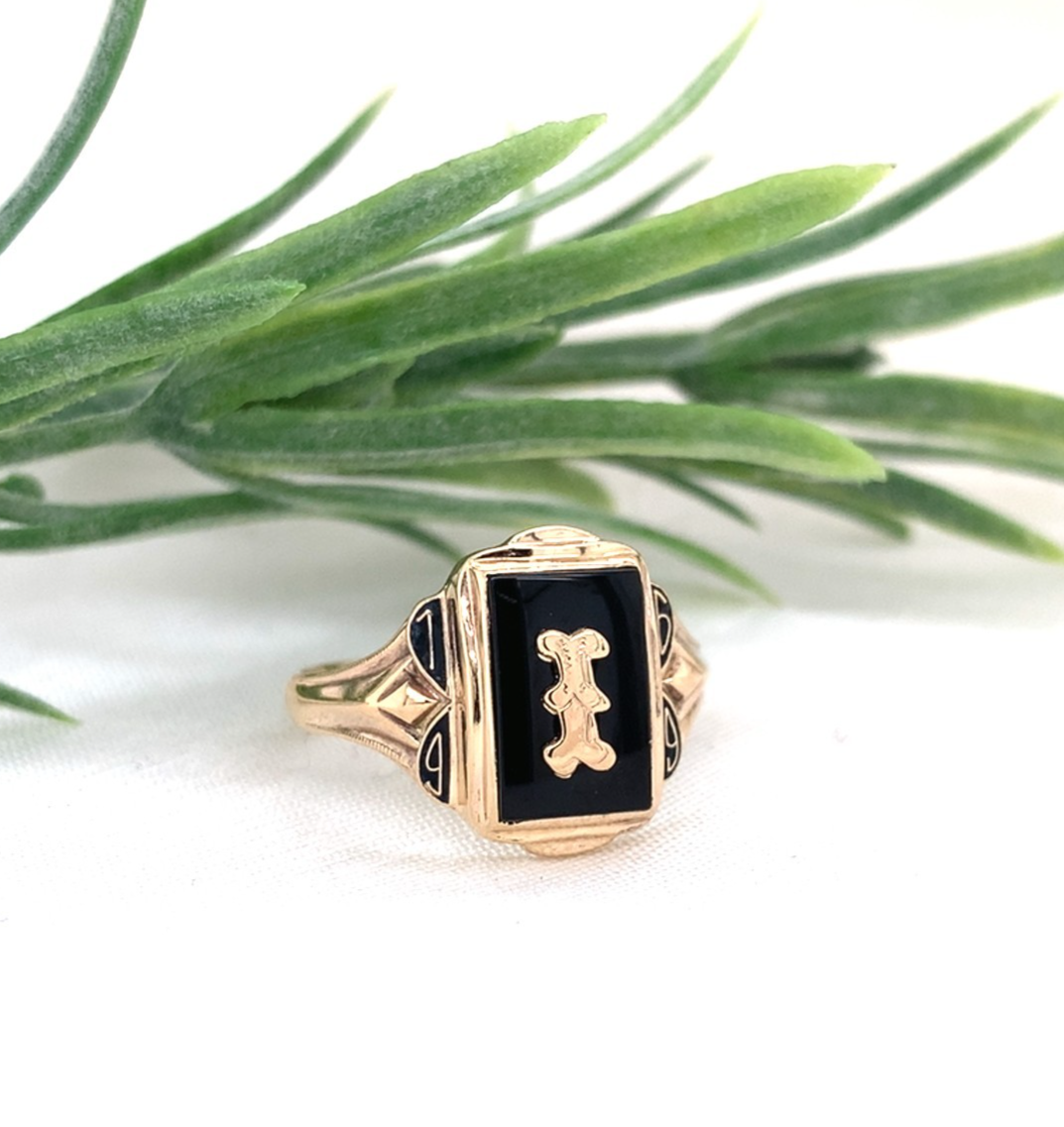 10k Yellow Gold Genuine Natural Black Onyx Signet Initial "I" Ring 8.5 (#J7411)