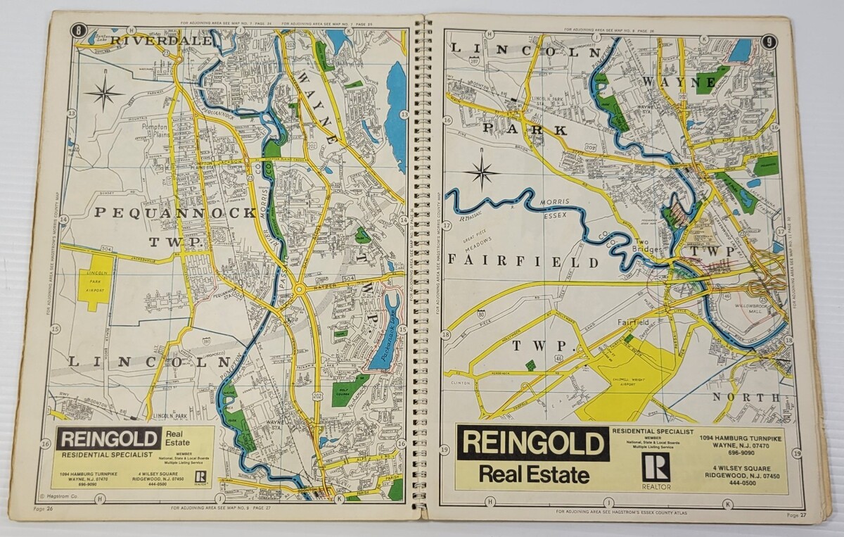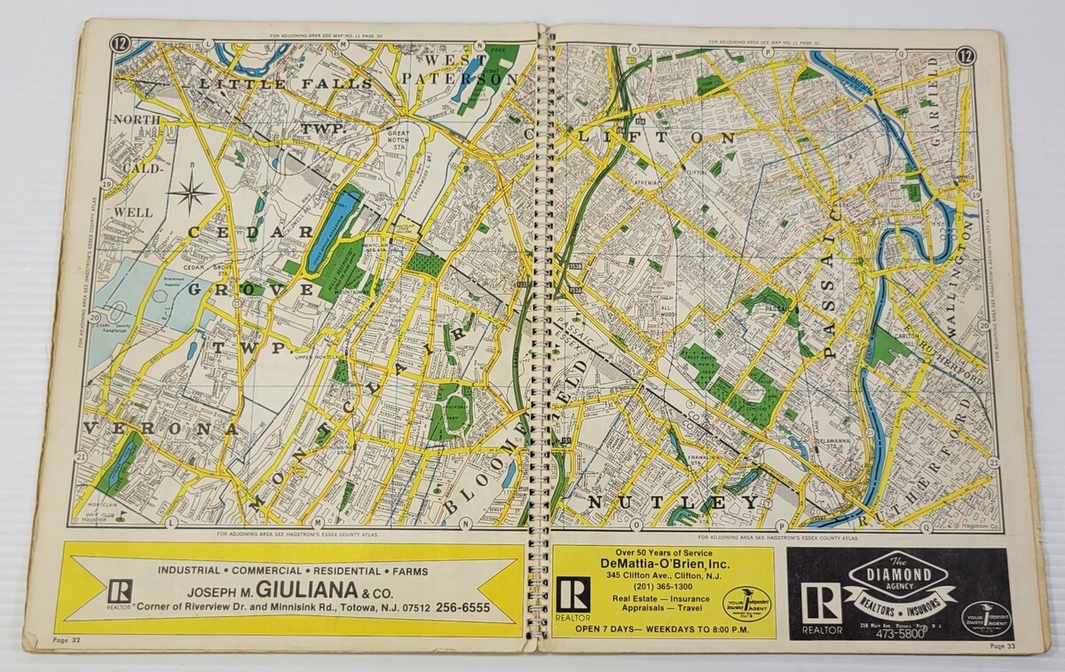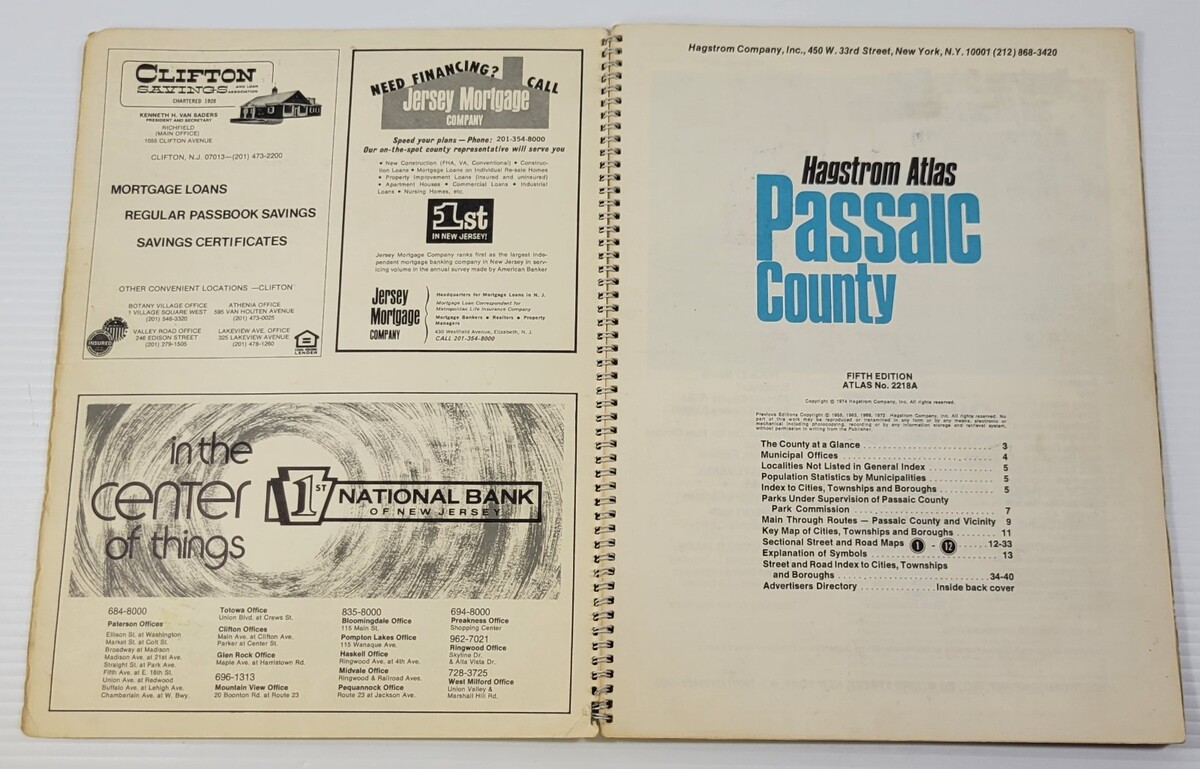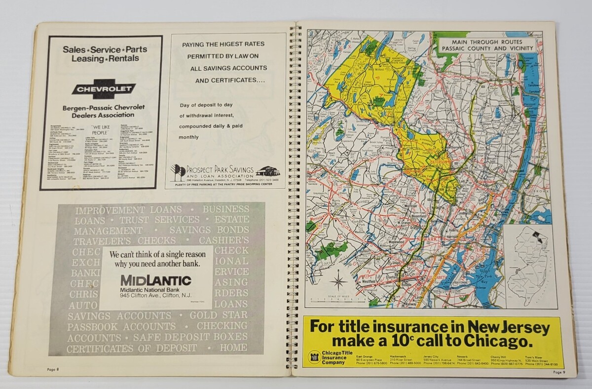 *L2) Passaic County New Jersey Atlas (1974 Hagstrom Spiral Paperback)