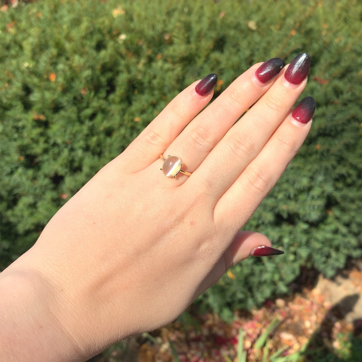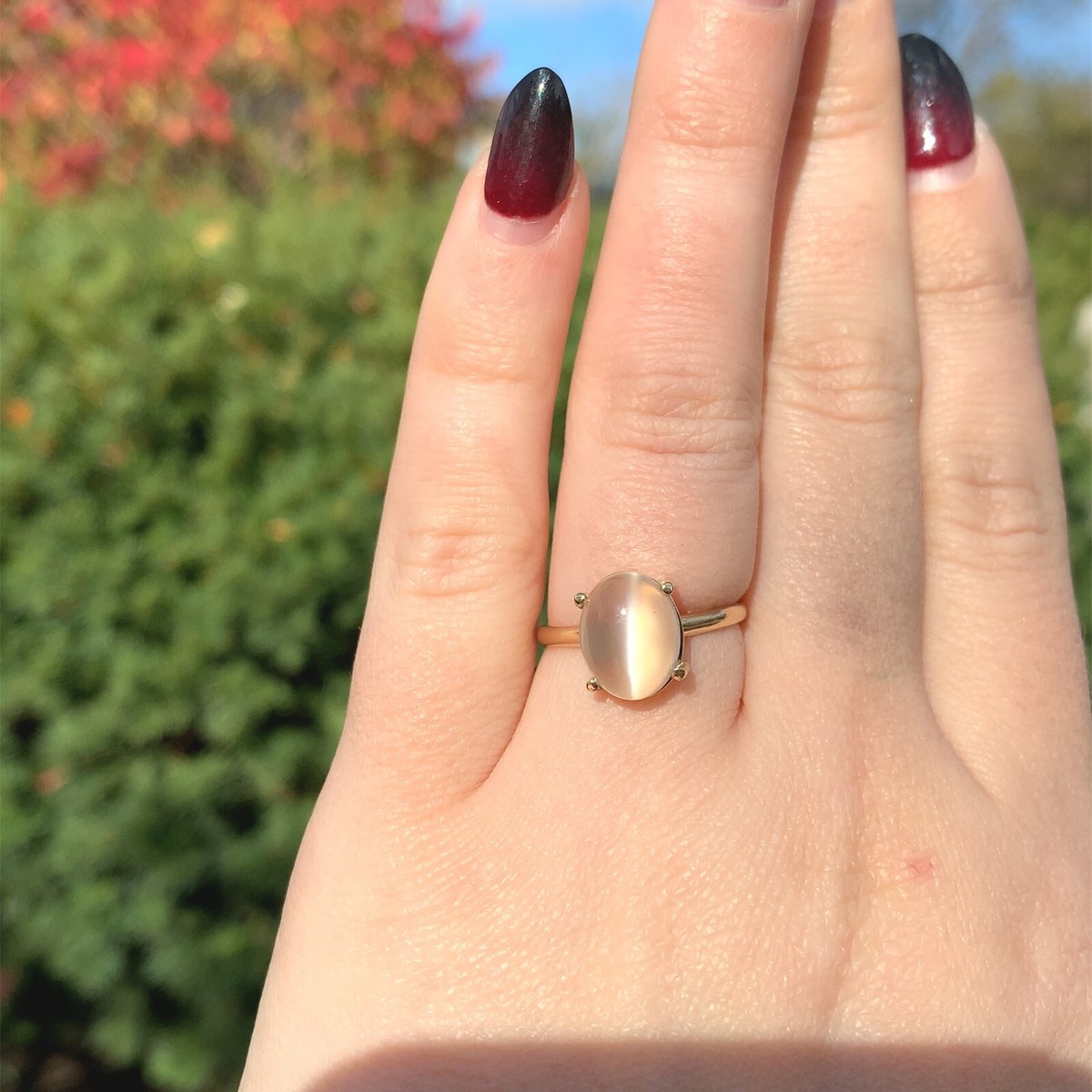 14k Yellow Gold 3.62 Carat Oval Cat's Eye Genuine Natural Moonstone Ring #J6463