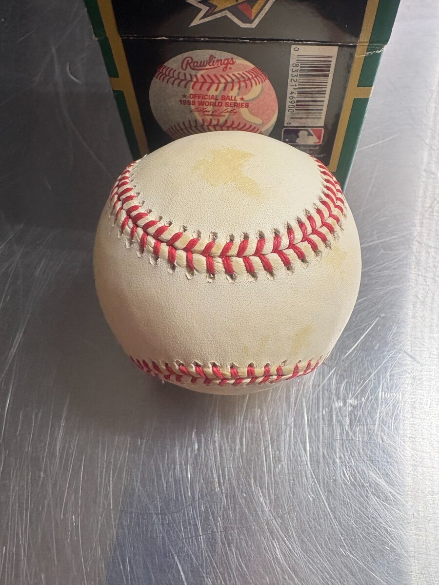 The Rawlings Official 1998 World Series Baseball is a highly sought-after collectible for fans of baseball memorabilia. This vintage baseball is officially licensed by Major League Baseball, ensuring its authenticity and significance. Packaged in its original box, this baseball is a valuable piece of sports history that commemorates the 1998 World Series. Perfect for collectors or fans of the sport, this classic baseball holds a special place in the world of vintage sports memorabilia. Pre-owned/used. Unsigned, blank ball. Has some wear as seen in pictures.