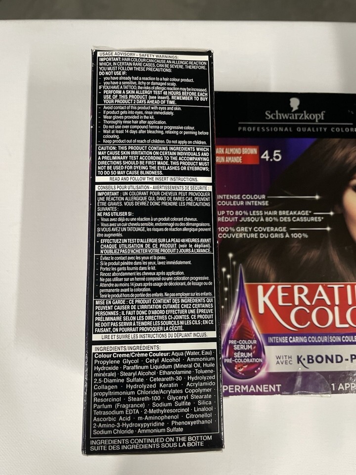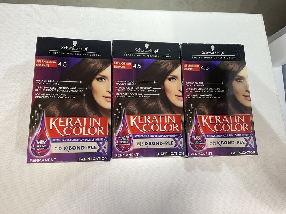 Schwarzkopf Keratin Color 4.5 Dark Almond Brown Permanent Hair Color Lot Of 3.