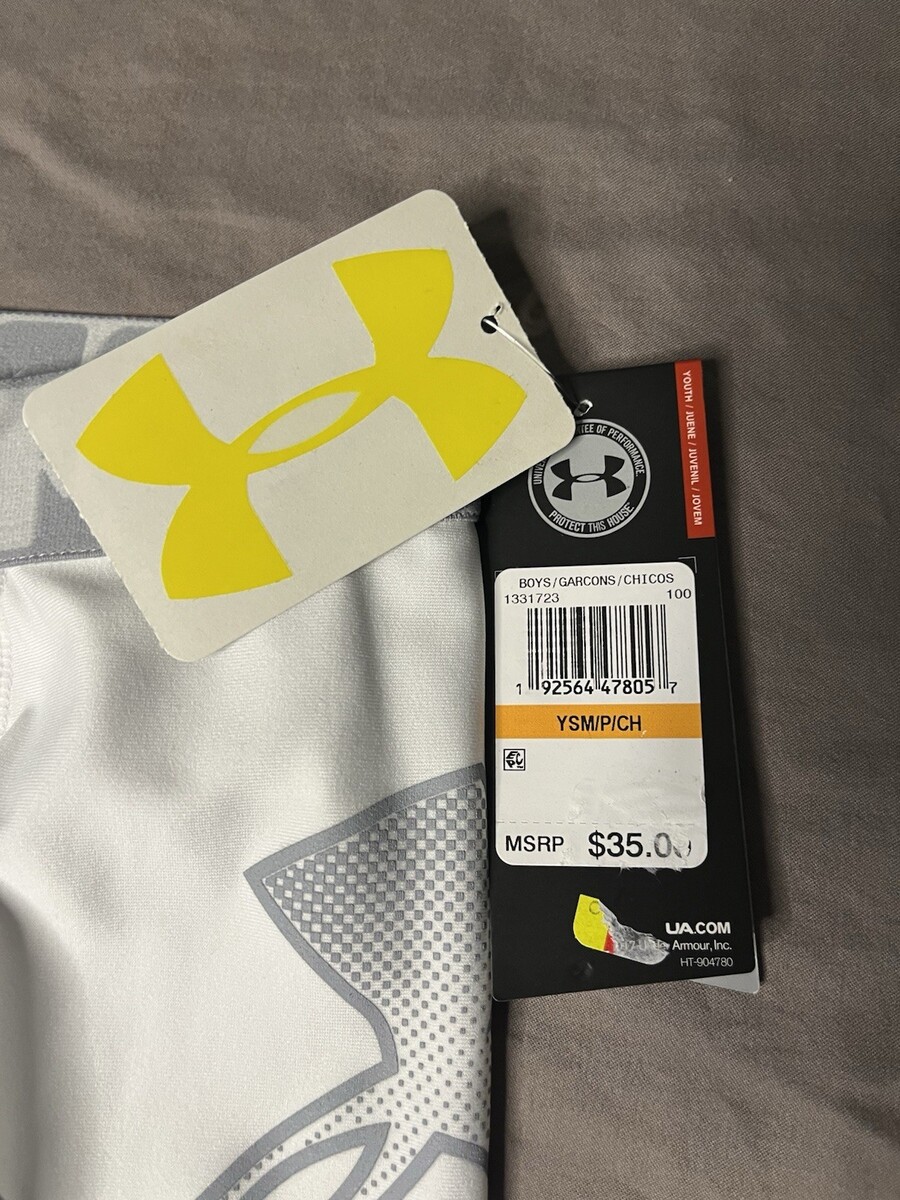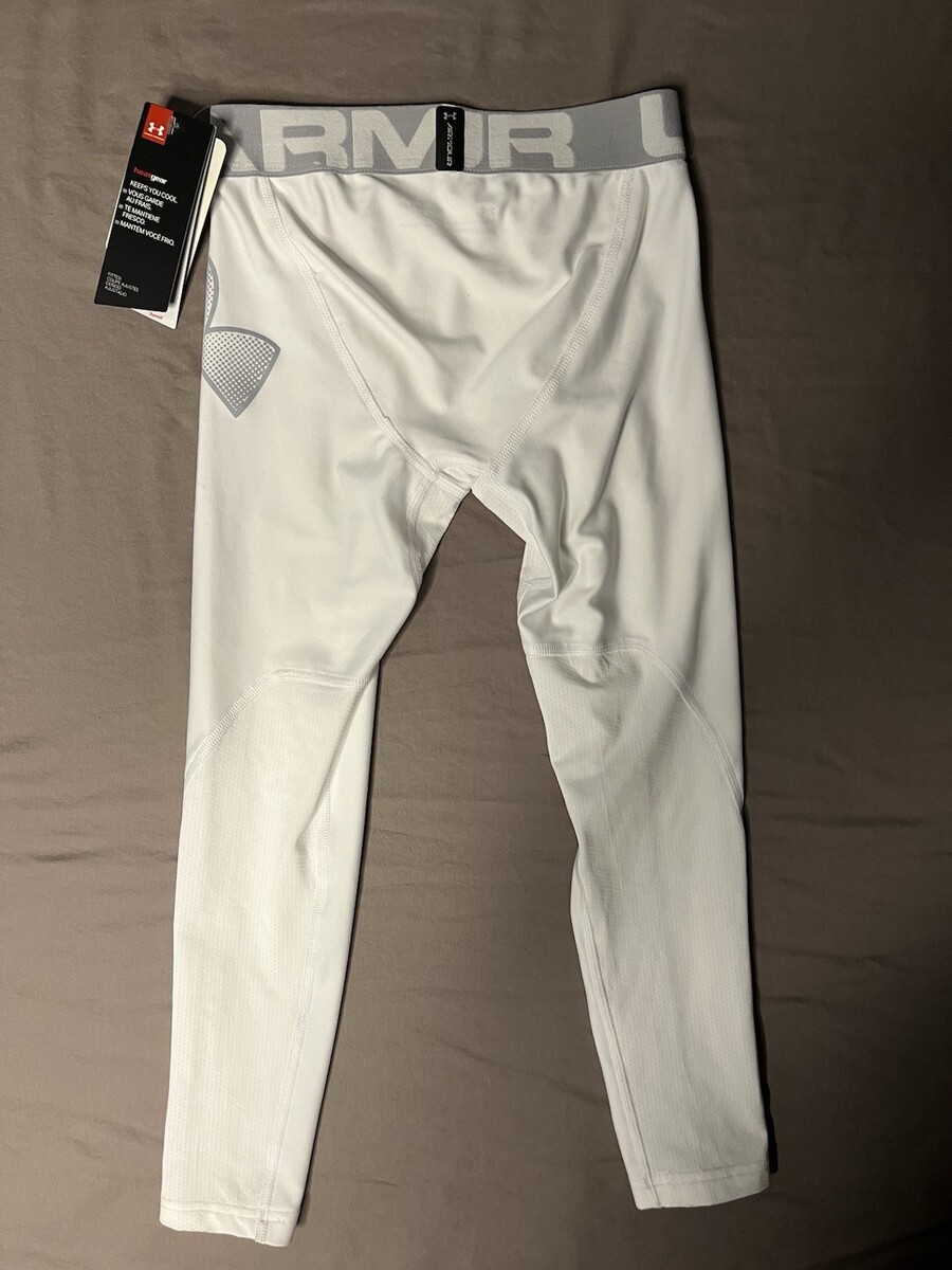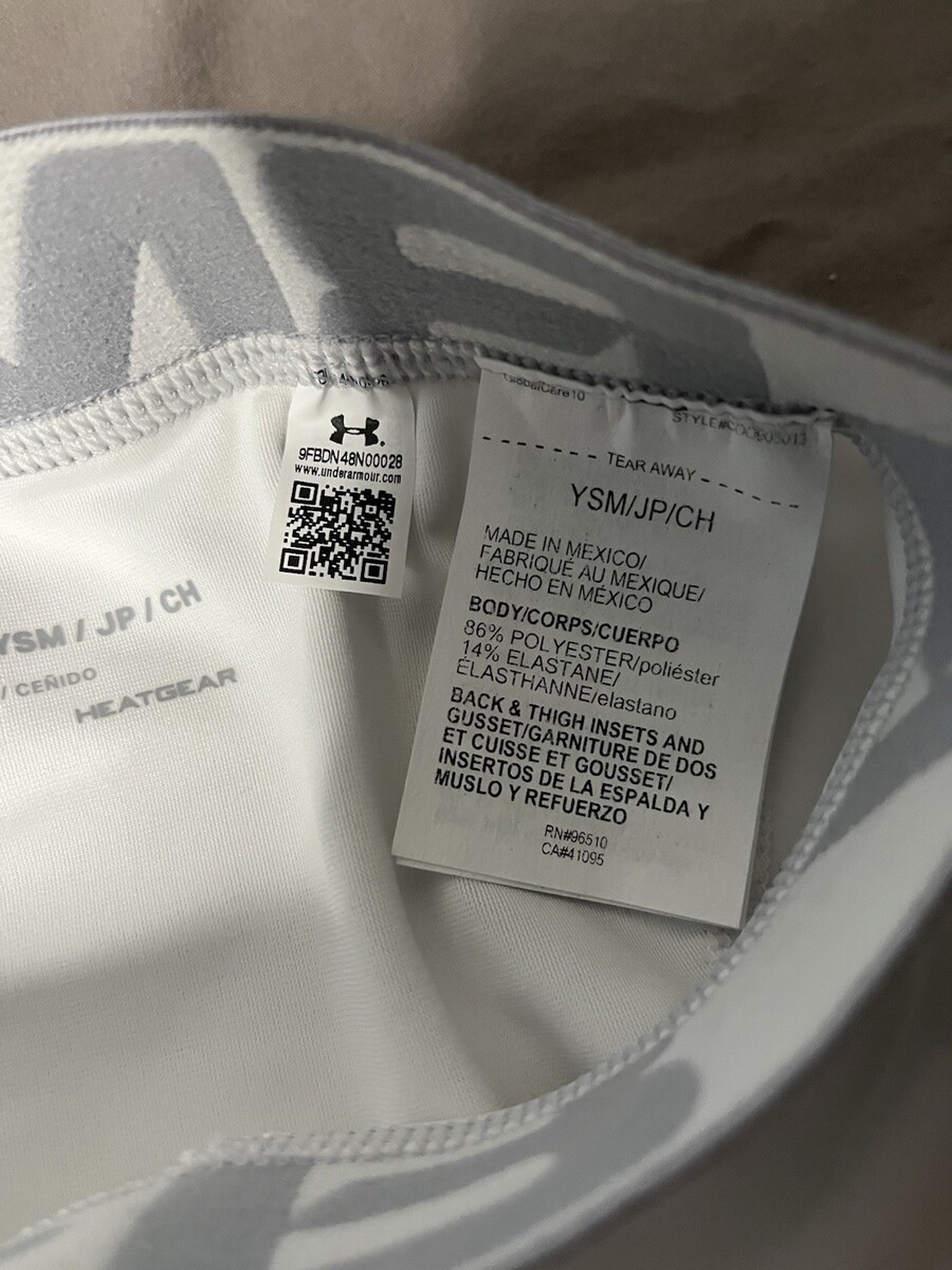 NWT Under Armour Heat Gear Leggings Youth Small White Compression Pants