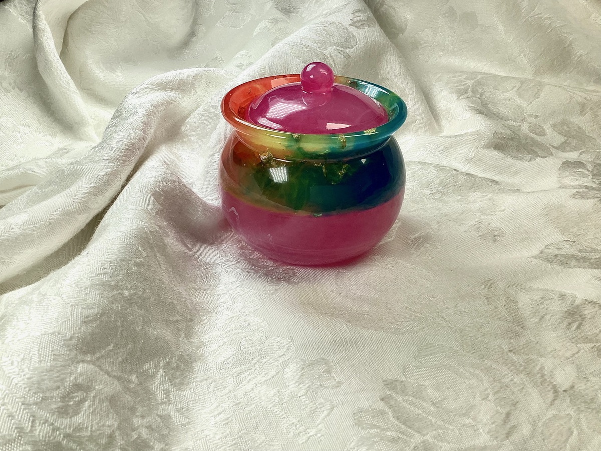 Jar Handmade Hawaii Resin Multicolored Lidded Jar Medium Size Ointment Type Jar
