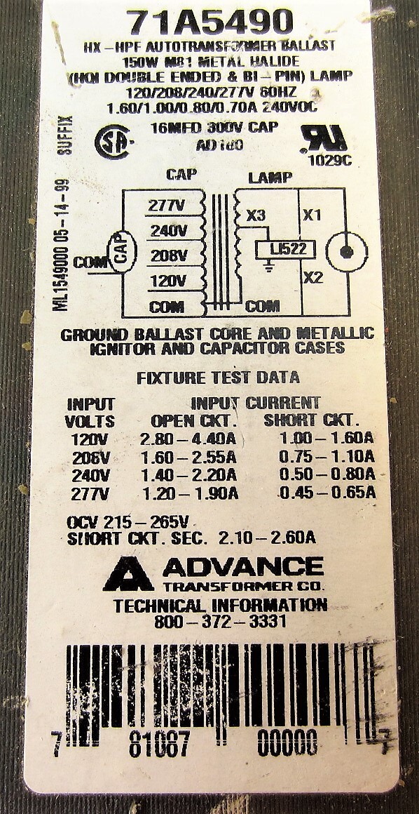 Advance 71A5490 HX-HPF Autotransformer Ballast Metal Halide New