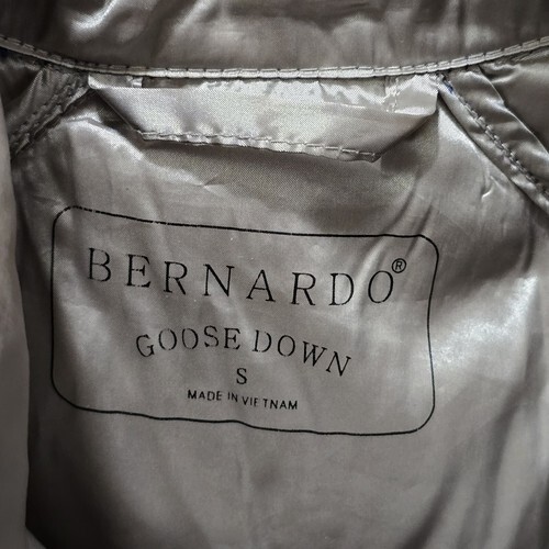 Excellent Condition Bernardo Dark Blue / Silver Quilted Goose Down Lightweight Full Zip Puffer Vest - Women's Size Small. Actual measurements: 37" chest, 24" length. Zippered pockets.