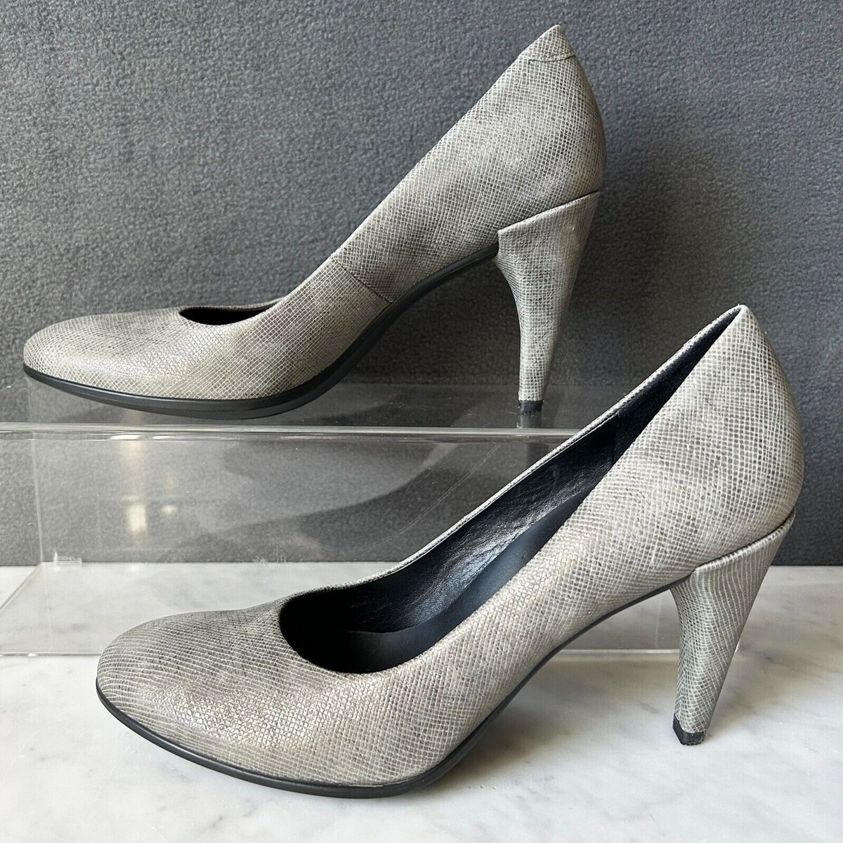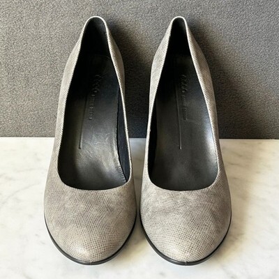 Ecco Danish Design Metallic Grey Crosshatch Leather Pumps Shape 75-Womens 8.5/39