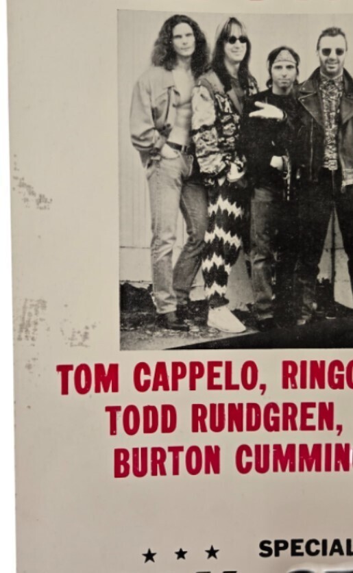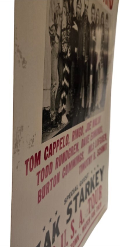 The poster advertises a tour featuring Ringo Starr and his band members, including Tom Cappelo, Joe Walsh, Todd Rundgren, Dave Edmonds, Burton Cummings, Nils Lofgren, and Timothy B. Schmit.