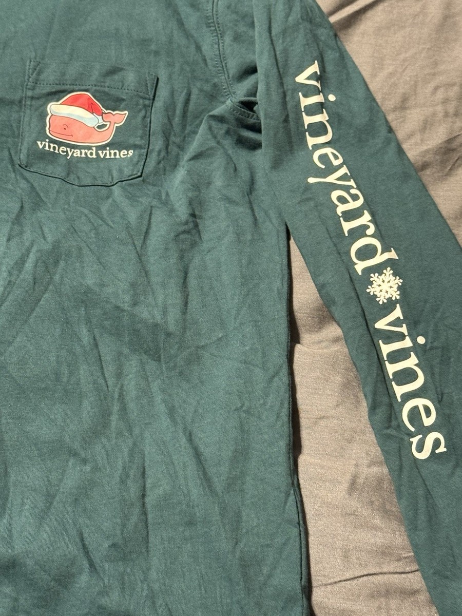 Vineyard Vines XS Long Sleeve Santa Whale Christmas Tee Green Women’s