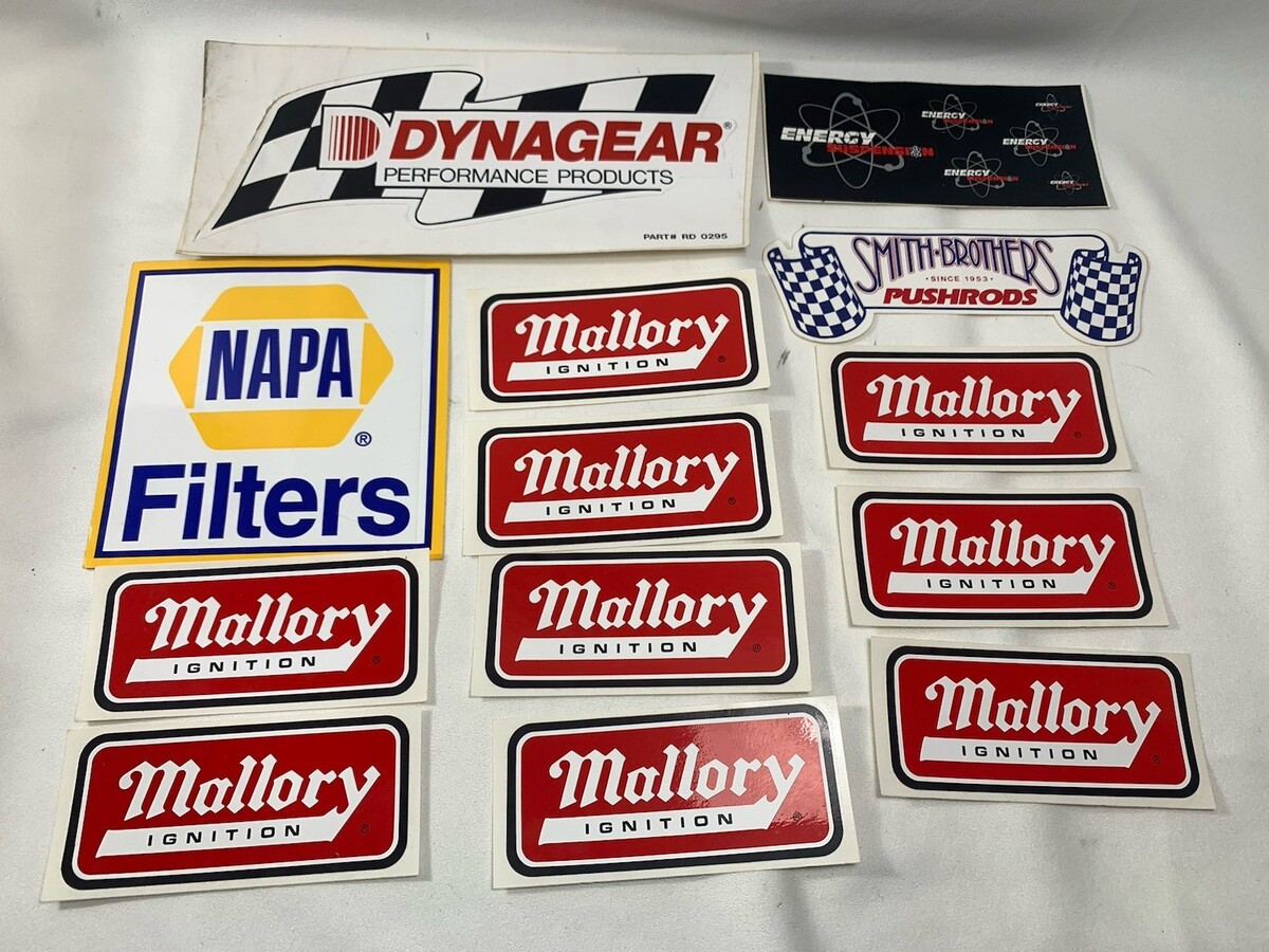 9 Vintage Mallory Ignition Racing Decals Stickers NHRA Hot Rod NASCAR + NAPA+2