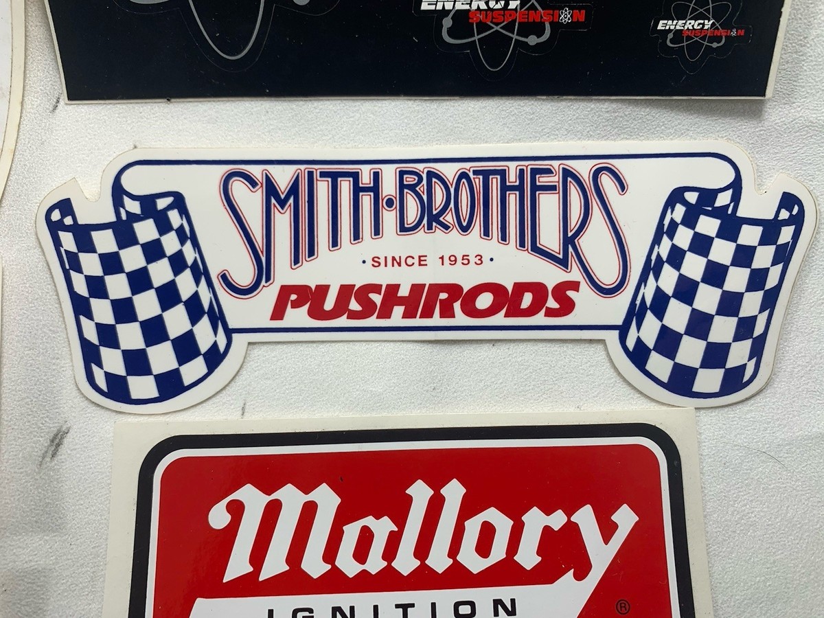This is a nice lot of vintage racing decals, mostly Mallory Ignition, plus a couple others, as shown.