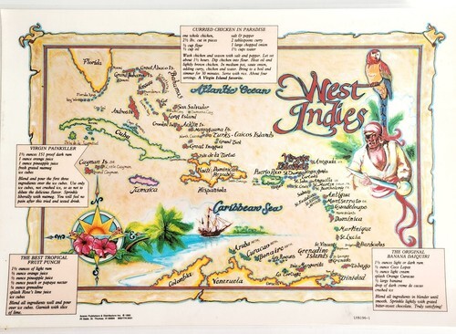 1993 West Indies Virgin Islands Placemat Vintage Drink Recipes Map Theme 1 DWII