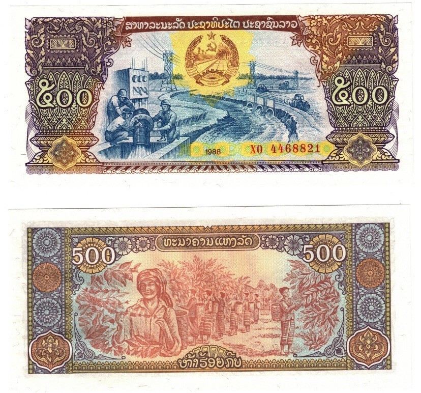 1988 Laos 500 Kip Banknote Workers Factory and similar items