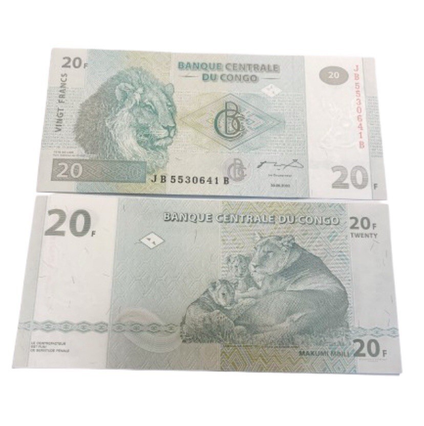 This is a 2003 Democratic Republic of Congo (DRC) 20 Francs banknote, part of the early 2000s series issued by the Central Bank of Congo. Known for its vivid colors and strong African-themed artwork, this note reflects the cultural and historical identity of the Congo.