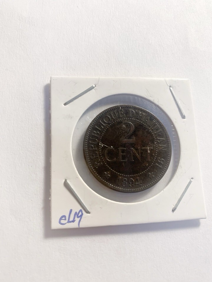 1894 Haiti 2 Centimes Coin - Antique and similar items