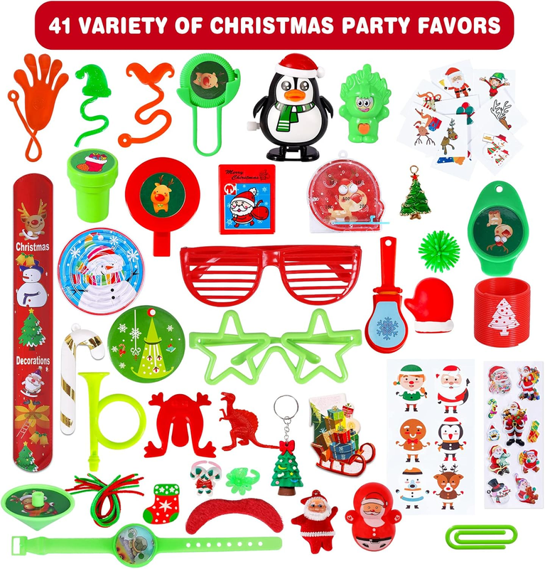 The Christmas Party Favors Theme Toys perfect for birthday party favor, Happy New Years Gifts, Christmas gifts, thanksgiving days gifts, prize box toys for classroom rewards, pinata filler toy, goodies bags toys, carnival prizes for kids.