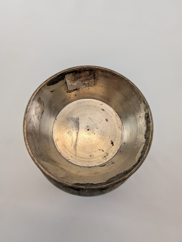 Please note: It is not marked as sterling silver (no visible hallmark). The metal has surface wear/tarnish consistent with age and use. Weighes 14ounces