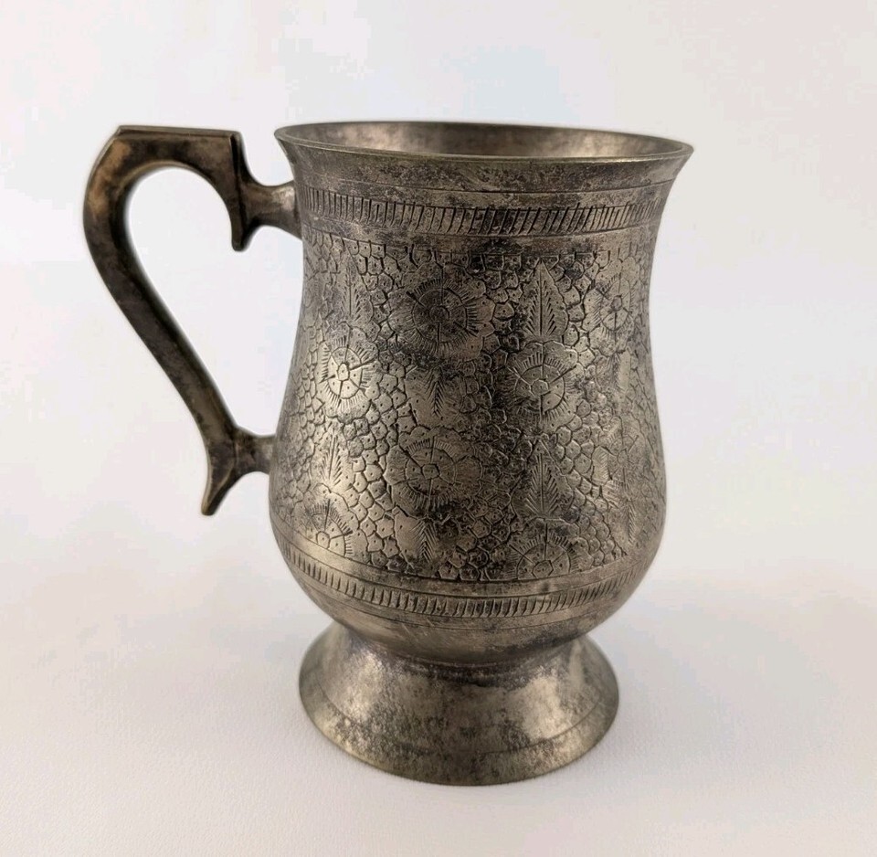 Engraved Saudi Arabia Crest Decorative Metal Tankard Mug 5″ Floral Motif