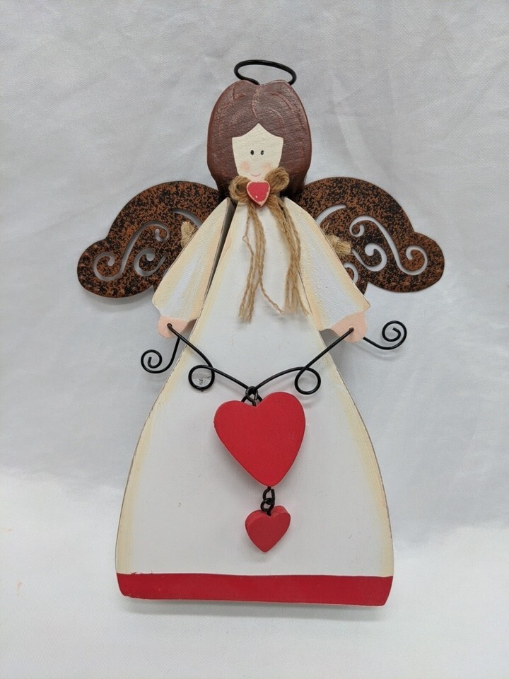 Russ Wooden Angel Holding Hearts 7" Home and similar items