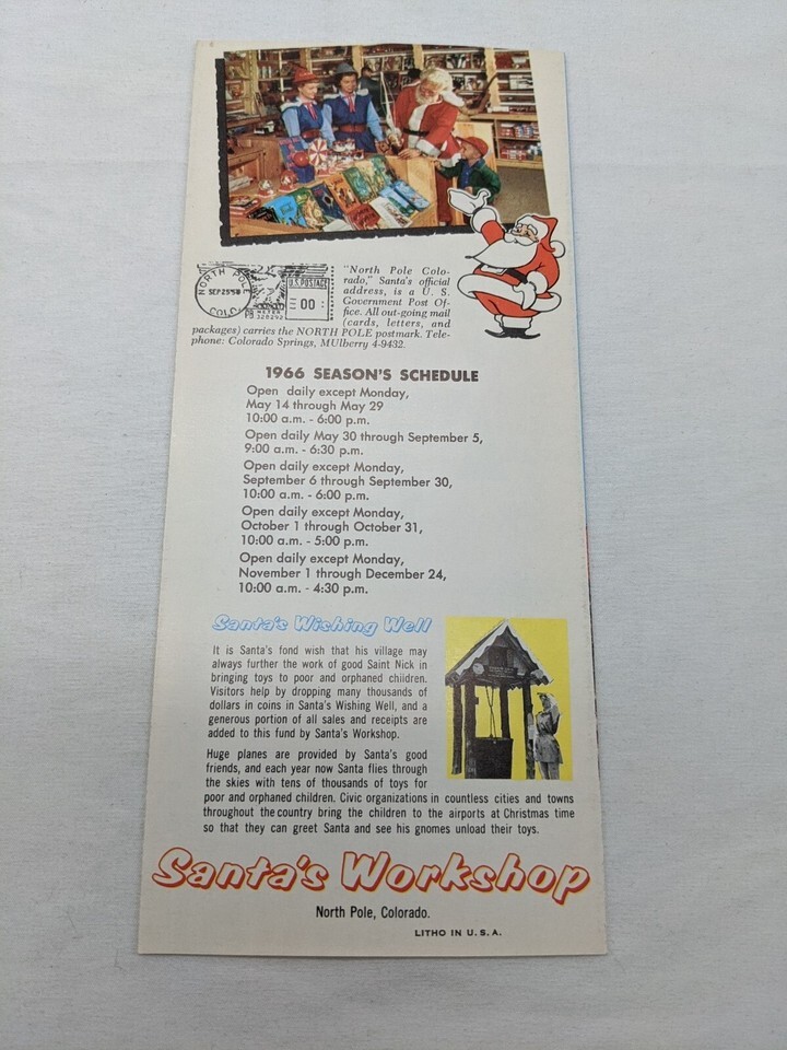 Vintage North Pole Colorado Santas Workshop Pikes Peak 1966 Travel Brochure. Combined Shipping (for USA Customers Only)