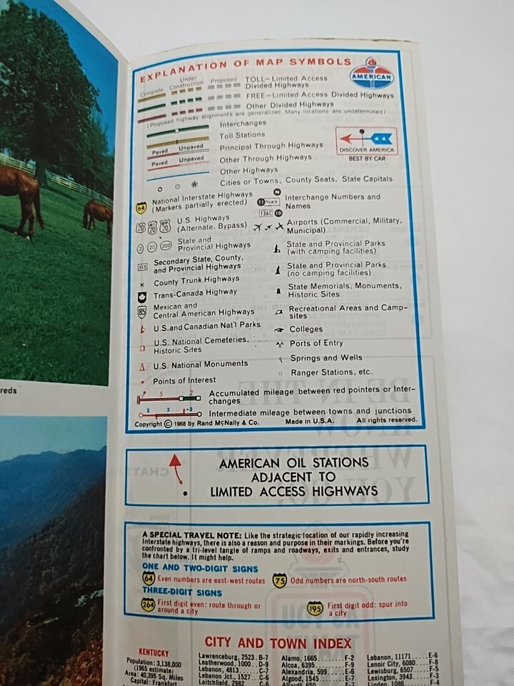 Vintage 1968 Kentucky Tennessee American Oil Company Brochure Travel Map