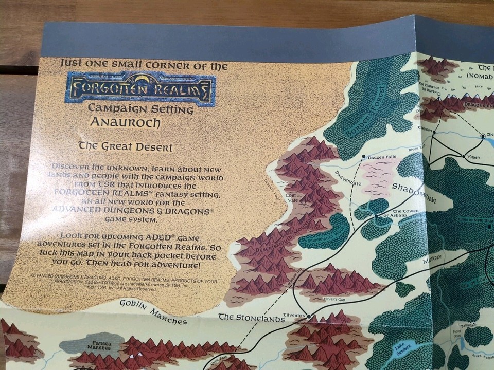 TSR 1987 Forgotten Realms Campaign Setting Anauroch The Great Desert Map