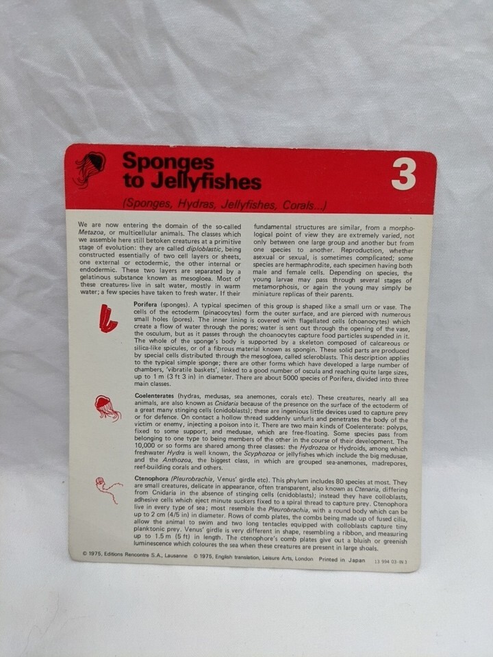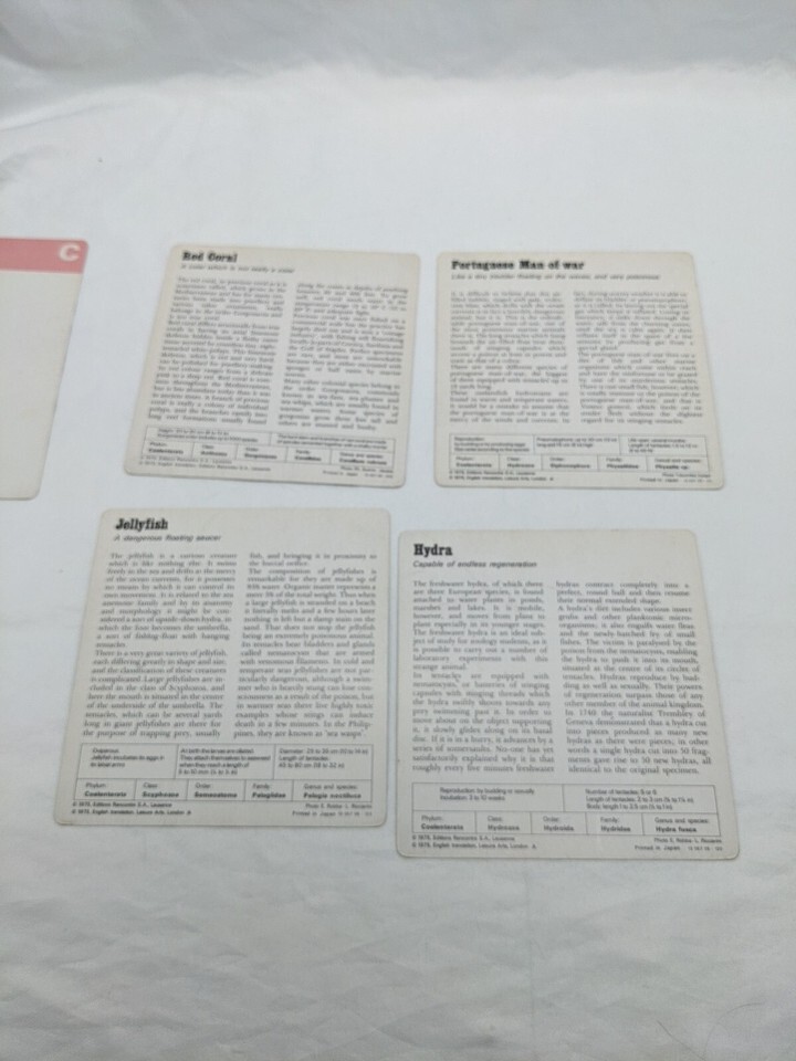 Lot Of (4) 1975 Rencontre Sponges And Jellyfishes Education Cards