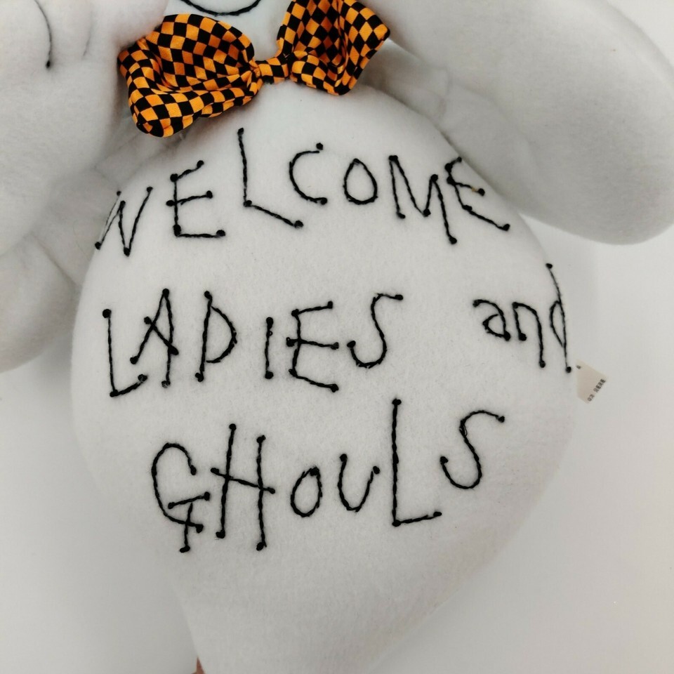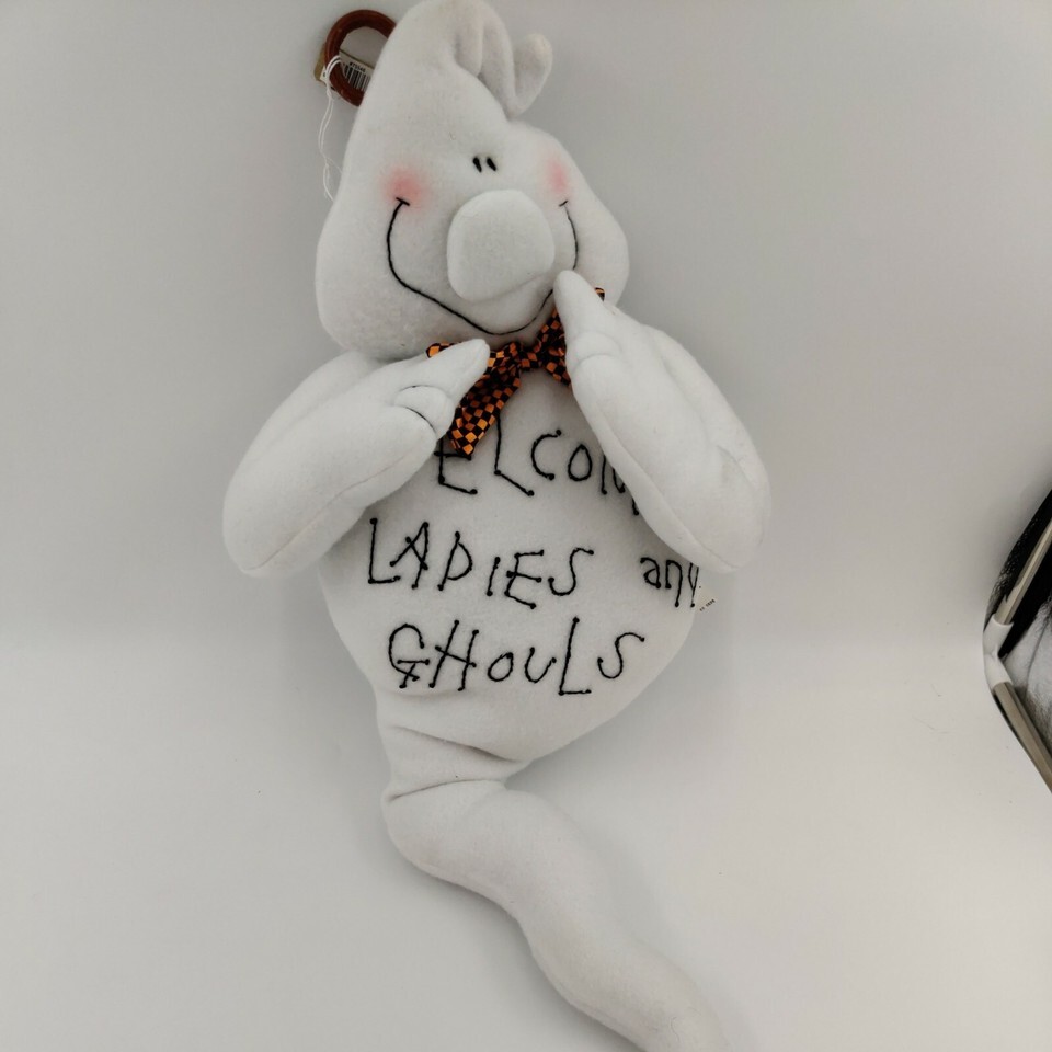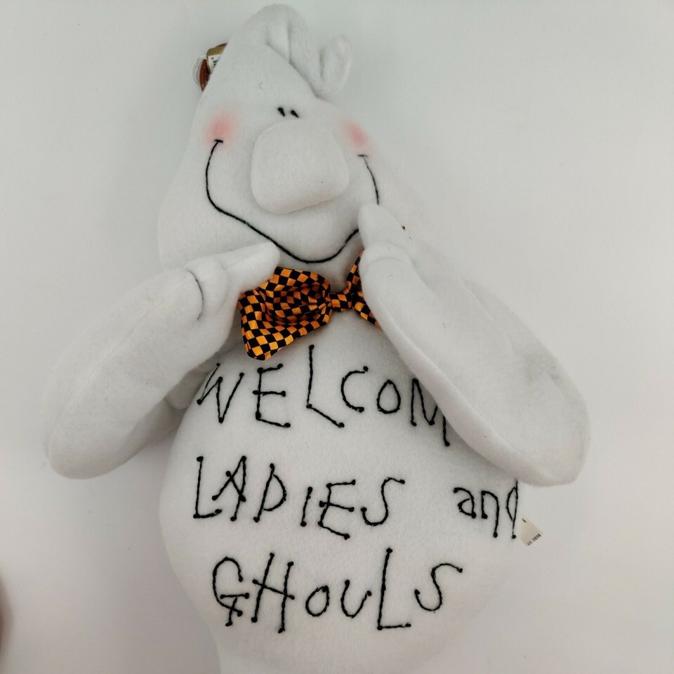 VTG 28"L Roman Inc. White Halloween Ghost "Welcome Ladies Ghouls" Decor Plush.
