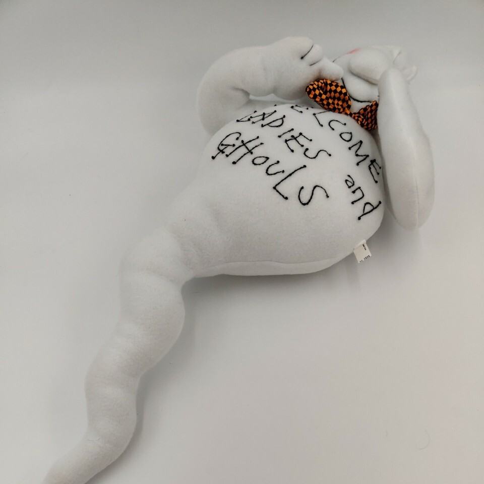 VTG 28"L Roman Inc. White Halloween Ghost "Welcome Ladies & Ghouls" Decor Plush