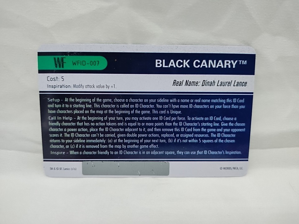 Heroclix Black Canary Justice League ID Card Unused WFID-007