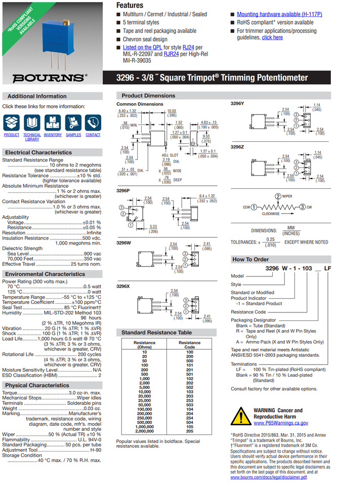 5Pcs 3296Y-1-502LF Bourns 5kOhm Trimming and 48 similar items