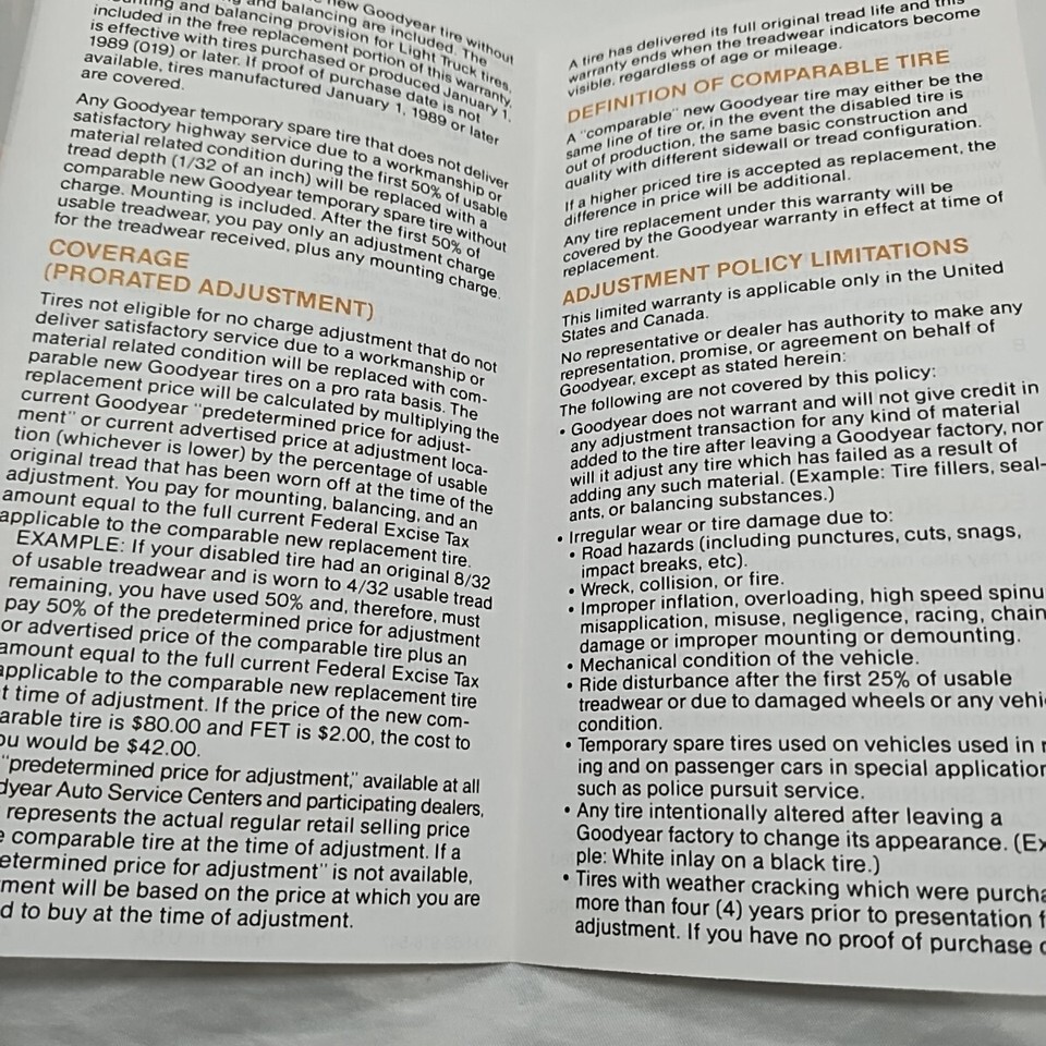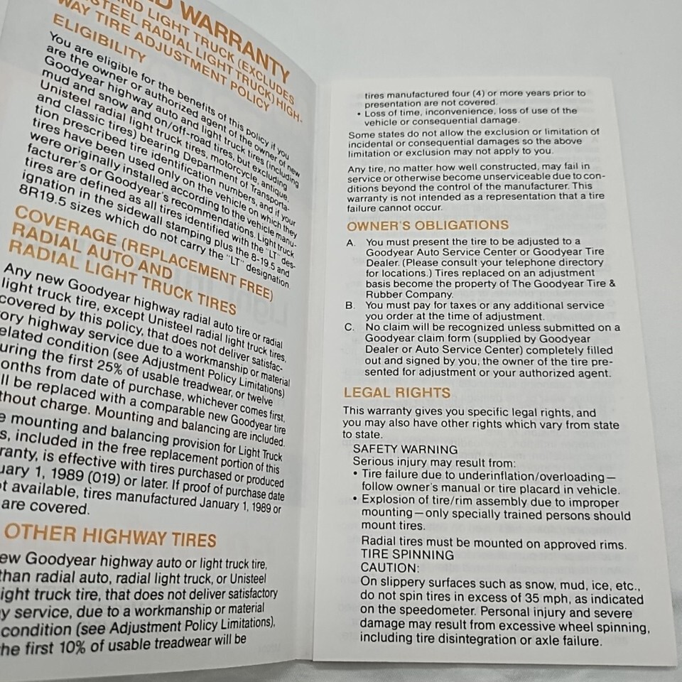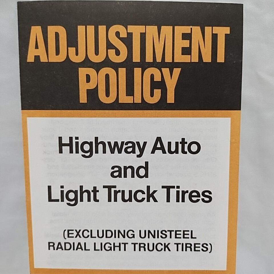 Vintage Good Year Highway Auto And Light Truck Tires Adjustment Policy Booklet