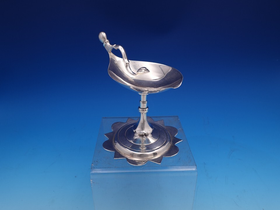 Unusual Mid-century Modern Sanborns Mexican sterling silver small compote with handle. It measures 5 1/2" tall x 5" wide (to handle) and weighs 10.3 troy ounces. It is not