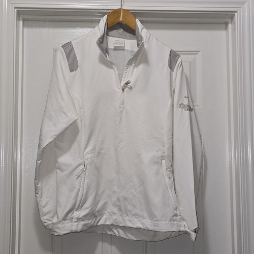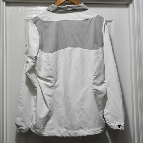 Excellent Condition Rare Nike Golf 2010 Opening Day Women's Windproof Jacket 333078-100 White / Gray Size M. Actual Measurements: 42" chest, 27" length.