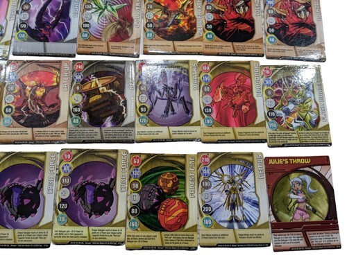 This lot includes 47 Bakugan cards along with a convenient carrying case to keep them organized. With a variety of cards from the popular collectible card game, these cards are perfect for any fan or collector. The assortment includes both common and rare cards, ensuring that there will be something for everyone in this lot. Whether you are just starting your collection or looking to expand, this lot is a great choice for any Bakugan enthusiast.