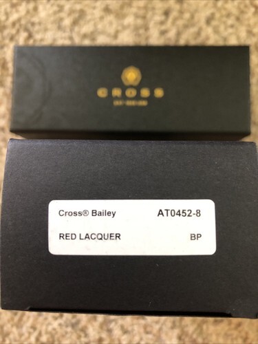 The Cross Bailey Ballpoint Pen in Red Lacquer is a high-quality writing instrument crafted from metal. Featuring the renowned Cross brand, this stylish pen comes brand new in its original box. Perfect for collectors or anyone looking for a durable and elegant ballpoint pen, this AT0452-8 model is sure to impress with its sleek design and smooth writing performance.