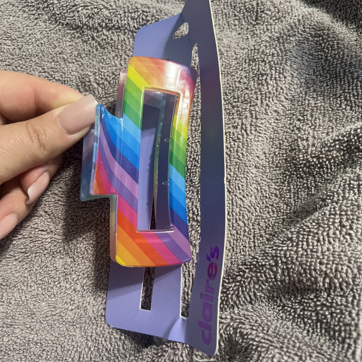 Claire’s Rectangular Clear Plastic Rainbow Hair Claw Clip 3” Long