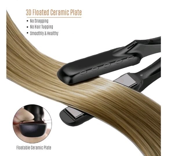 Fast Warm?Up Consistent Temperature ? Heats quickly to a steady 410F for even styling; ceramic tourmaline coating and 3D floating plates help reduce snagging and frizz and support fewer passes; best performance on dry hair using thin sections from root to tip